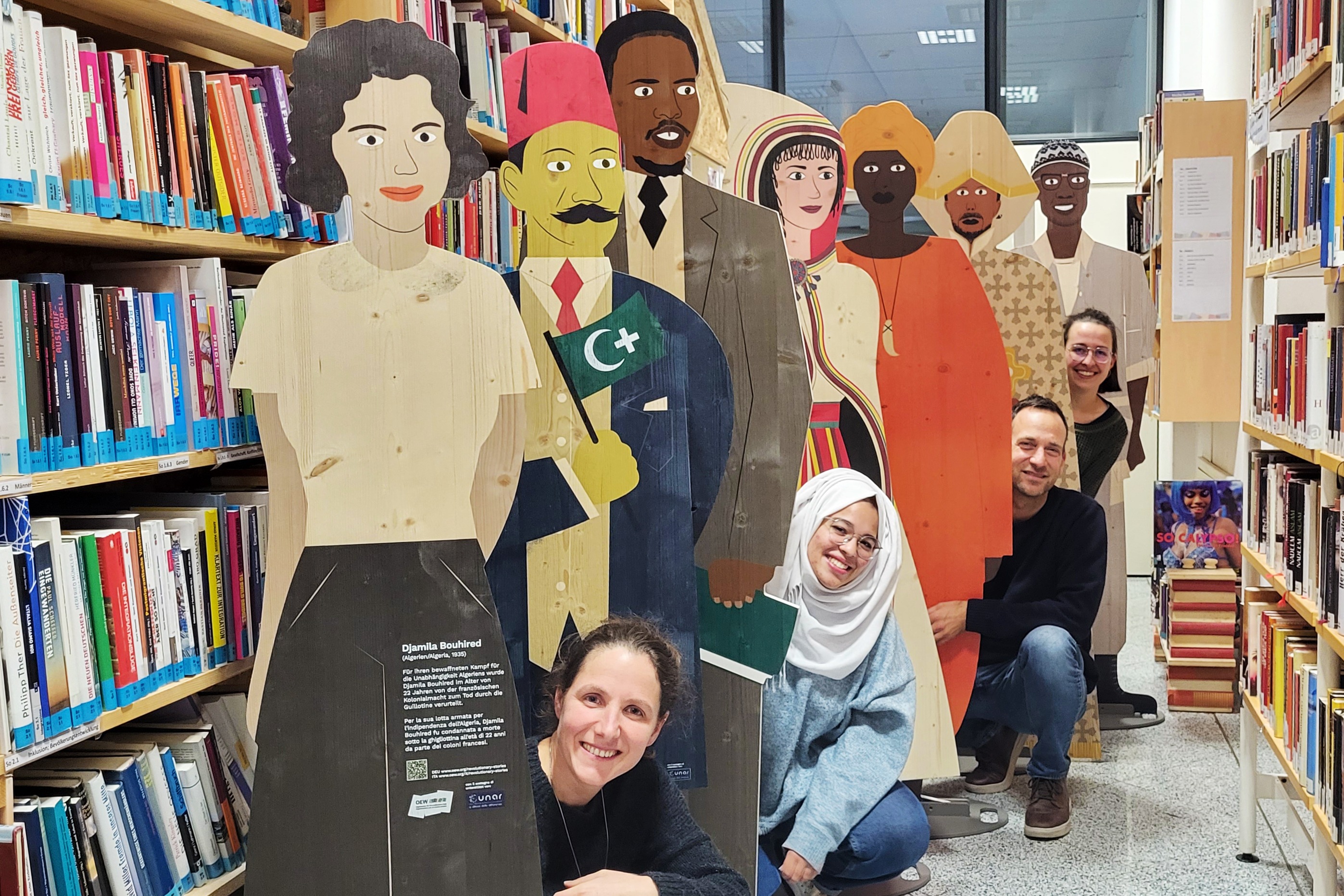 7 dieser Held*innen stellen wir lebensgroß bei Euch auf. Sie sind mit Kurzinfos versehen. Ein QR-Code oder link führt zu weiterführenden Texten. So können ihre Lebensgeschichten, ihre Visionen und Ideale erarbeitet werden.