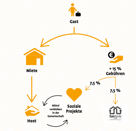 Das Unternehmen Airbnb mit Sitz im kalifornischen Silicon Valley stellt als Online-Plattform den Kontakt zwischen Gastgeber*in und Gast her und ist ausschließlich für die Abwicklung der Buchung verantwortlich. Die Transaktion findet dabei über die Plattform statt. Der Gast zahlt den Betrag für die Buchung an Airbnb. Gastgeber*innen wird der Betrag erst 24 Stunden nach Anreise ausgezahlt, um sicherzustellen, dass der Gast die Unterkunft so vorfindet, wie sie angeboten wurde. Das ist bequem und gibt Sicherheit. Airbnb kassiert für diese Dienstleistung 15 Prozent der anfallenden Kosten von den Reisenden und 2 bis 5 Prozent von den Vermieter*innen. Was ursprünglich von zwei Studenten angesichts mangelnder leistbarer Kurzzeitunterkünfte in Amerika entwickelt wurde, gilt heute als ein Paradebeispiel der Sharing Economy. Längst wird aber nicht mehr nur das freie WG-Zimmer oder die eine Ferienwohnung vermietet. Es ist ein lukratives Geschäft geworden, und heute kaufen internationale Investoren ganze Mehrfamilienhäuser, um sie über die Plattformen an Touristen zu vermieten. Das innovative und einst gemeinnützig motivierte Startup Airbnb ist heute ein weltweit agierender Megakonzern, der 2021 einen Rekord-Umsatz von 4,81 Milliarden US-Dollar verzeichnete und mittlerweile ganze Wirtschaftszweige umkrempelt und in Metropolen wie Amsterdam oder Barcelona den Wohnungsmarkt komplett auf den Kopf stellt – zu Ungunsten der lokalen Bevölkerung, Studierender und Arbeitender, die durch die Verknappung von Mietwohnungen keinen Wohnraum mehr finden oder sich die Mieten nicht mehr leisten können. Außerdem bieten derlei Plattformen kaum Kontrollmöglichkeiten und lange Zeit agierten die Vermieter*innen in einer Art Grauzone. Erst nach und nach wurden die Behörden darauf aufmerksam und heute herrscht in den meisten Orten eine Meldepflicht inklusive der Abgabe von Steuern. Ein großer Teil der Wertschöpfung wandert aber nach wie vor direkt zu Airbnb nach Kaliforniern. Auch in Südtirol hat das Unternehmen Fuß gefasst, über 1000 Unterkünfte werden hierzulande auf der Plattform angeboten.