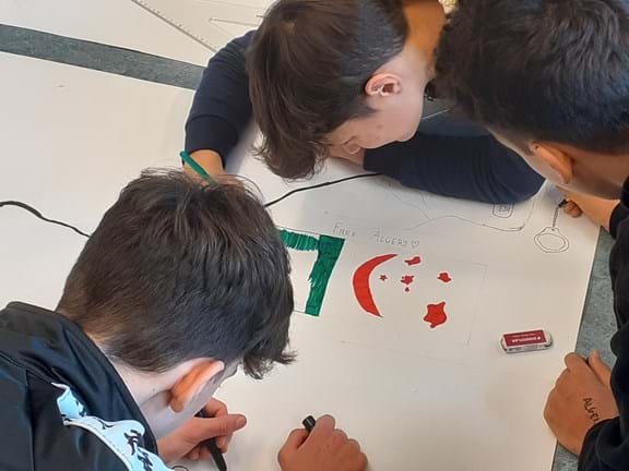 Die 3. Klassen der Bozner Mittelschule „Ilaria Alpi“ haben schon zur Kolonialgeschichte gearbeitet. Sie haben unsere Erzählung von „Djamila Bouhired“ gehört und sich künstlerisch mit der algerischen Widerstandskämpferin auseinandergesetzt. Wir freuen uns, dass wir die Ergebnisse hier präsentieren dürfen:
